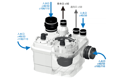 • 進(jìn)水接口:40/50MM入水口(1個(gè)); 40/50/100/110MM入水口(3個(gè))