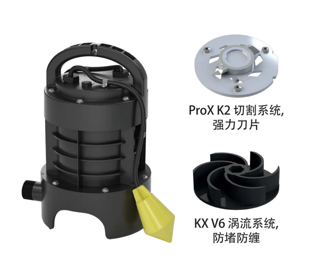 • 切割泵配有Pro X K2研磨刀頭,通過小直徑管道排水。